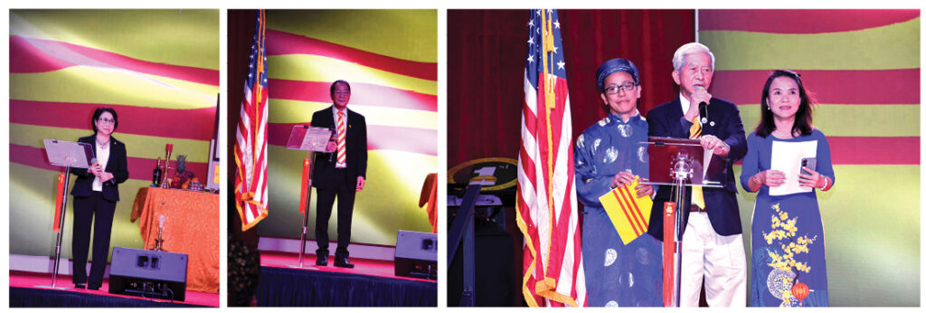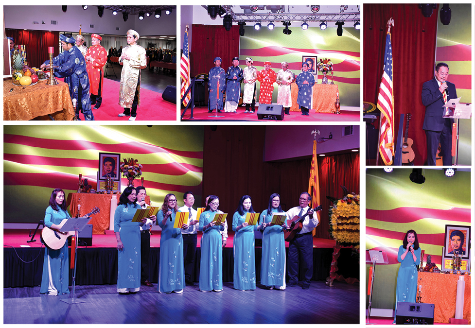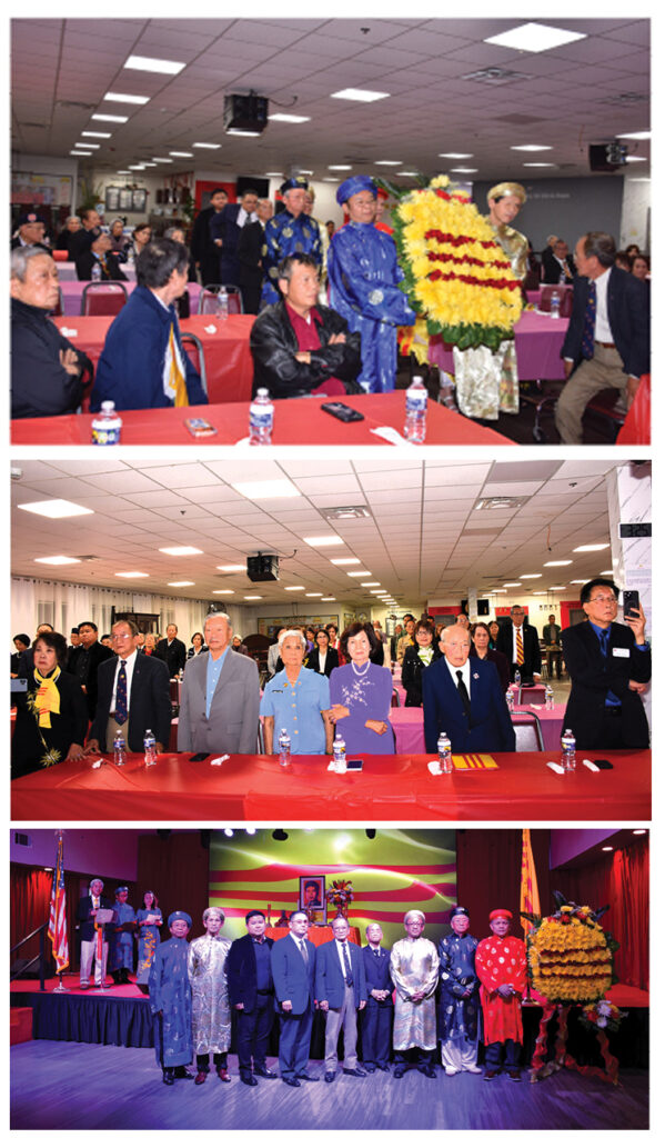 Đúng 3 giờ pm nhạc quốc thiều trổi lên, ông Nguyễn Mậu Hiệp cựu chủ nhiệm báo Hồn Nước đã lên điều hành nghi lễ chào cờ. Mọi người có mặt đã hướng về quốc kỳ Việt Nam Cộng Hòa và Hoa Kỳ để tôn vinh hồn thiêng sông núi và lắng lòng trong giây phút tưởng nhớ các bậc tiền nhân tiên tổ, những người con Việt yêu thương đã anh dũng nằm xuống để bảo vệ vùng trời vùng đất tự do.