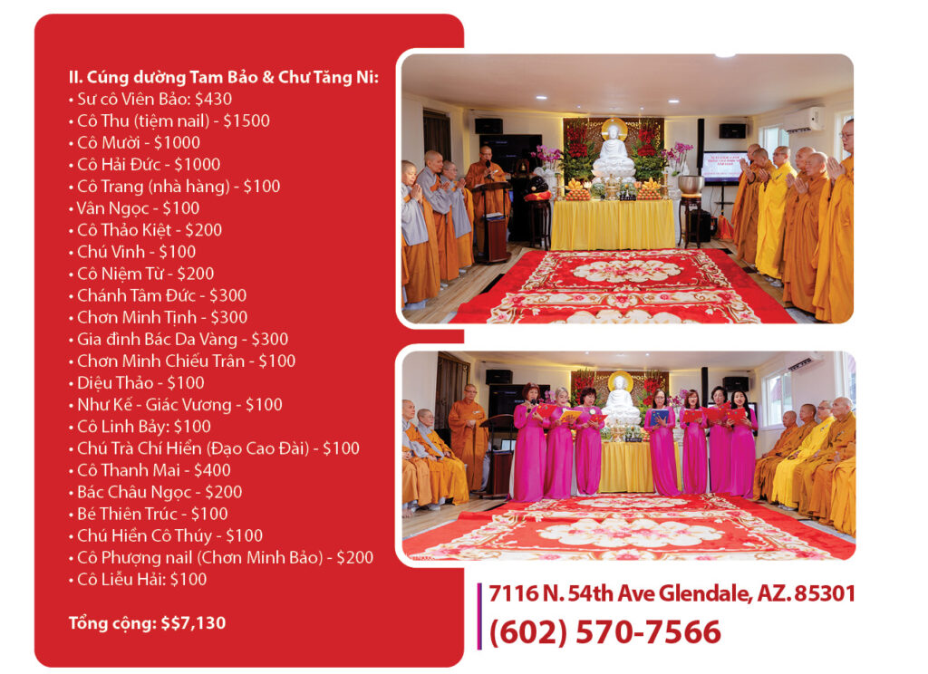 Danh Sách Phật Tử Cúng Dường & Đóng Góp